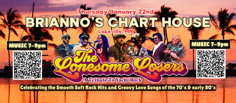 The Lonesome Losers are the Twin Cities premiere tribute to Yacht Rock.Covering a blend of soulful smooth soft rock hits that range from1974 to 1984. Featuring music by artists such as Christopher Cross, Ace, Player, Carly Simon, Kenny Loggins, Michael McDonald, Orleans, Pablo Cruise, Toto, Supertramp, Gerry Rafferty, Climax Blues Band, Grover Washington, Jr., Linda Ronstadt, Nicolette Larson, Steely Dan, Stevie Nicks, Carole King, Captain and Tennille, George Michael, Ambrosia, The Little River Band and so many more. The Lonesome Losers provide a night of unforgettable talent paired with a one of a kind catalogue of songs that is sure to keep your guests dancing, singing and “Reminiscing” all night long.